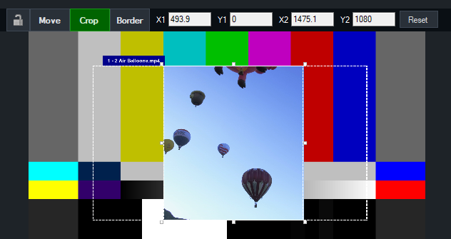 Three different "modes" can be selected from the toolbar: Move, Crop and Border.