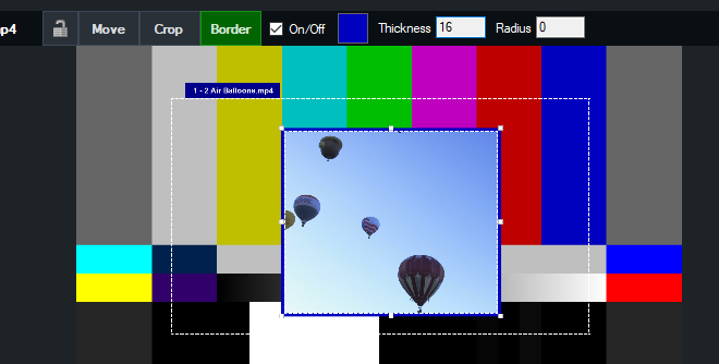 Border settings such as On/Off, Thickness and Radius can be configured from the toolbar.
