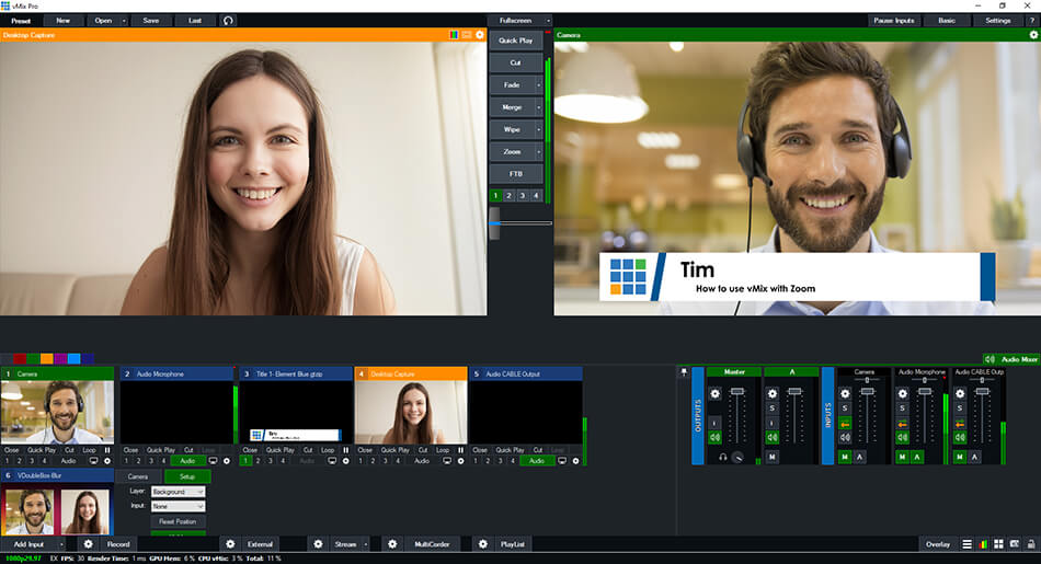 Now that our Zoom video and audio is in vMix, we can use it as part of our production.